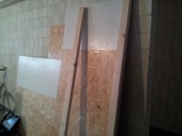 Die im Baumarkt bereits zugeschnittenen OSB-Platten haben wir mit weissem Lack von „Swingcolor“ lackiert. Die Bodenplatte wurde vollständig weiss, die anderen zwei Seiten auf je einer Höhe von 50cm mit insgesamt vier Schichten Lack. Dies dient der besseren Reinigung des späteren Geheges.